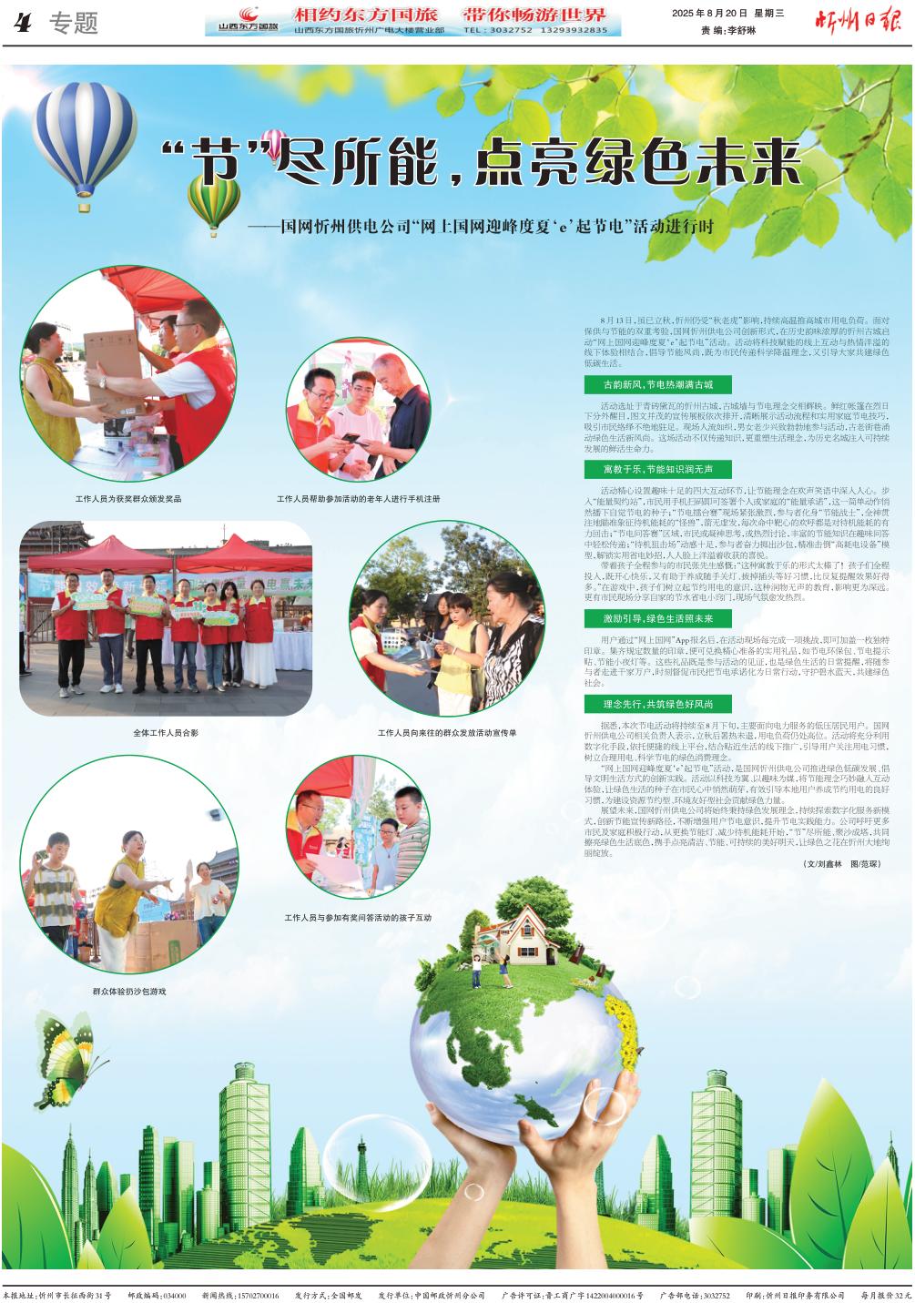 展望未來,國(guó)網(wǎng)忻州供電公司將始終秉持綠色發(fā)展理念,持續(xù)探索數(shù)字化服務(wù)新模式,創(chuàng)新節(jié)能宣傳新路徑,不斷增強(qiáng)用戶節(jié)電意識(shí),提升節(jié)電實(shí)踐能力。公司呼吁更多市民及家庭積極行動(dòng),從更換節(jié)能燈、減少待機(jī)能耗開始,“節(jié)”盡所能、聚沙成塔,共同擦亮綠色生活底色,攜手點(diǎn)亮清潔、節(jié)能、可持續(xù)的美好明天,讓綠色之花在忻州大地絢麗綻放。