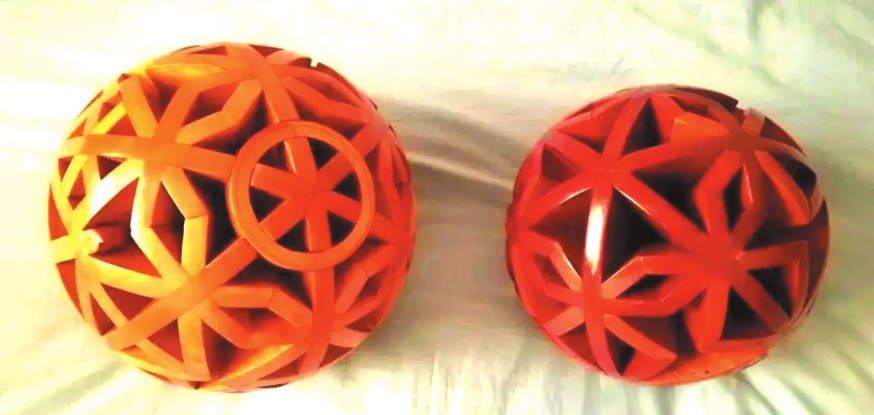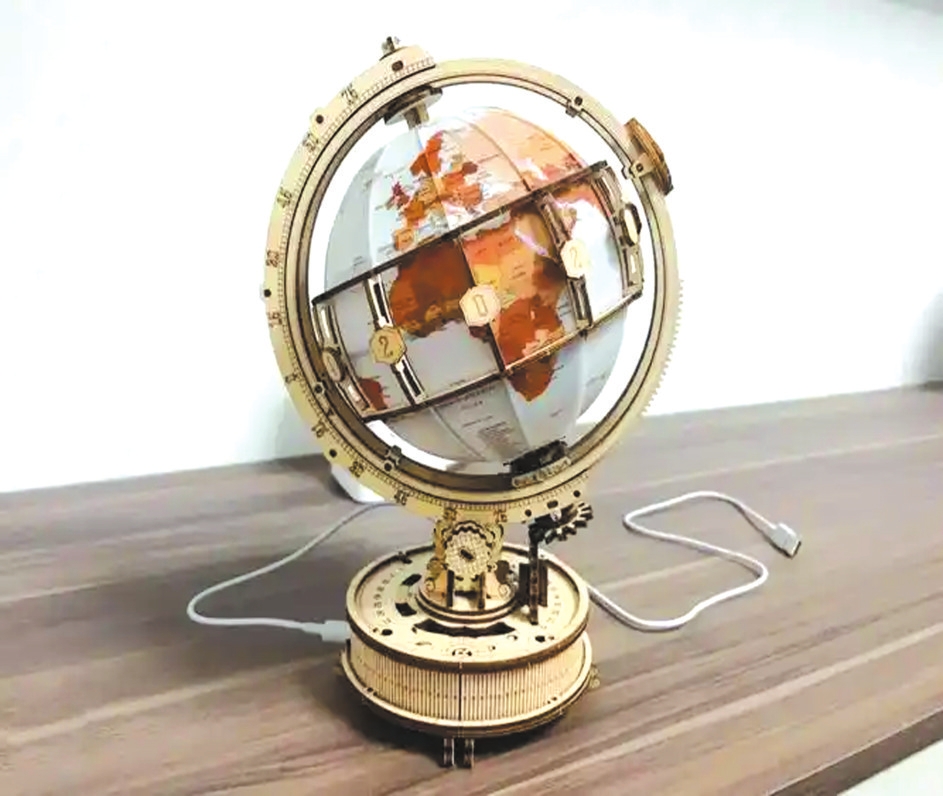“沒用一顆釘子、一滴膠水,我們利用了榫卯技藝,讓108塊形狀各異的木構(gòu)件緊密連接,構(gòu)成一個(gè)鏤空的地球,祈盼世界團(tuán)結(jié)、人類和平?!薄堕久挠钪妗肪巹 ⑿弥萃鯛栁耐妫敯噫i、孔明鎖)(以下簡稱“王爾文玩”)傳統(tǒng)木作技藝非物質(zhì)文化遺產(chǎn)代表性傳承人趙永功說。