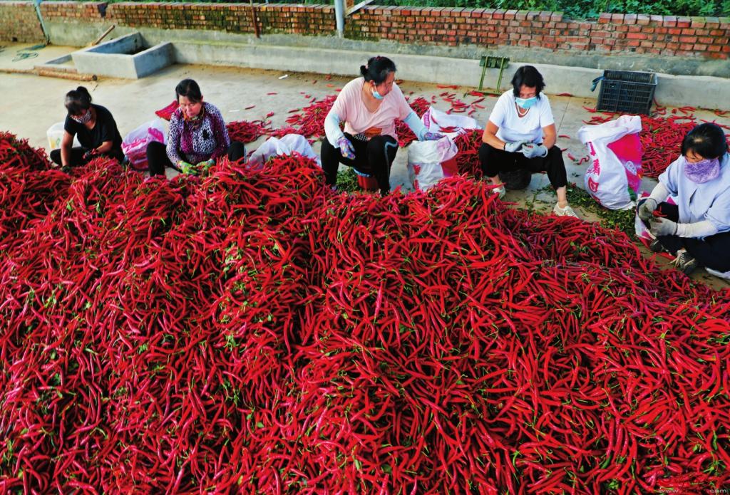 從一開始的小打小鬧,到現(xiàn)在辣椒產(chǎn)業(yè)已成為全村農(nóng)民增收的主要途徑,形成了以種植商品椒為特色的辣椒種植基地?!艾F(xiàn)在我們村辣椒種植面積在5000畝左右,村民們還在外縣、外村包地種辣椒,規(guī)模已達(dá)2萬畝左右?!备叱谴妩h支部書記、村委會(huì)主任羅前緒介紹。